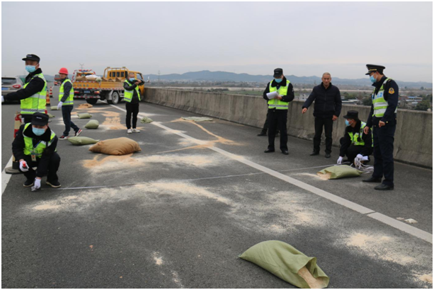 此次演練模擬場(chǎng)景為:涪江特大橋上一貨車(chē)發(fā)生單車(chē)事故,車(chē)上貨物傾撒,造成環(huán)境污染,道路堵塞。接到報(bào)警后,應(yīng)急處置演練領(lǐng)導(dǎo)小組立即啟動(dòng)應(yīng)急預(yù)案,高速交警、交通執(zhí)法、路產(chǎn)維護(hù)、安宏救援、綿陽(yáng)路橋等相關(guān)人員迅速集結(jié)趕赴事發(fā)地展開(kāi)搶險(xiǎn)救援,同時(shí)執(zhí)行公路斷道告知、實(shí)施交通管制、清理污染物、積極搶通道路恢復(fù)交通等應(yīng)急措施,快速消除了安全隱患,保障了道路暢通。