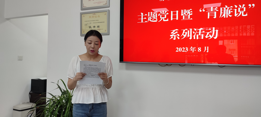 為進一步加強黨員廉潔教育,強化紀律和規(guī)矩意識,8月24日,瑞天房產分公司黨支部組織開展主題黨日暨“青廉說”活動。