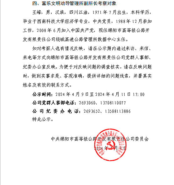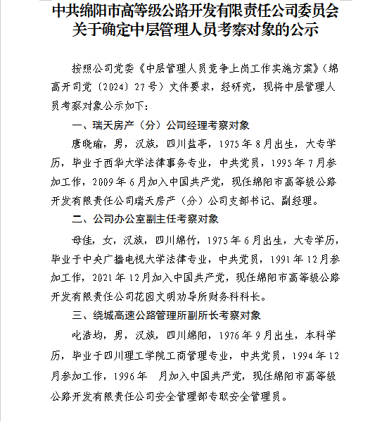 關(guān)于確定中層管理人員考察對象的公示
