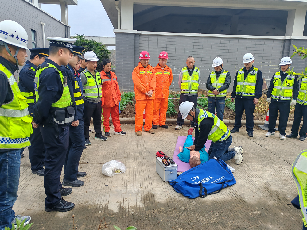 此次演練場景模擬S1成萬高速綿陽繞城段南服務區(qū)進行地下污水井清淤作業(yè)過程中,因有害氣體超標作業(yè)人員出現頭暈、昏迷險情?,F場發(fā)現險情后,值班人員第一時間上報,演練總指揮迅速啟動有限空間應急預案,立即下達警戒、檢測、通風、救援、醫(yī)療救護等指令。各應急小組快速響應、分工協作:警戒保衛(wèi)組迅速劃定危險區(qū)域,設置警示標識,疏散無關人員與車輛;環(huán)境監(jiān)測組使用氣體檢測儀對有限空間內氧氣、有毒有害氣體濃度進行實時監(jiān)測;搶險救援組穿戴呼吸器、安全繩、應急箱等專業(yè)裝備,在持續(xù)強制通風后規(guī)范實施救援,快速將“被困人員”轉移至安全開闊地帶;醫(yī)療救護組立即開展心肺復蘇、人工呼吸等現場急救,并同步對接120急救中心,做好轉運準備。整個演練過程緊張有序、環(huán)節(jié)緊湊,各小組配合默契、處置規(guī)范,嚴格按照應急預案完成全部救援流程,達到了預期演練效果。